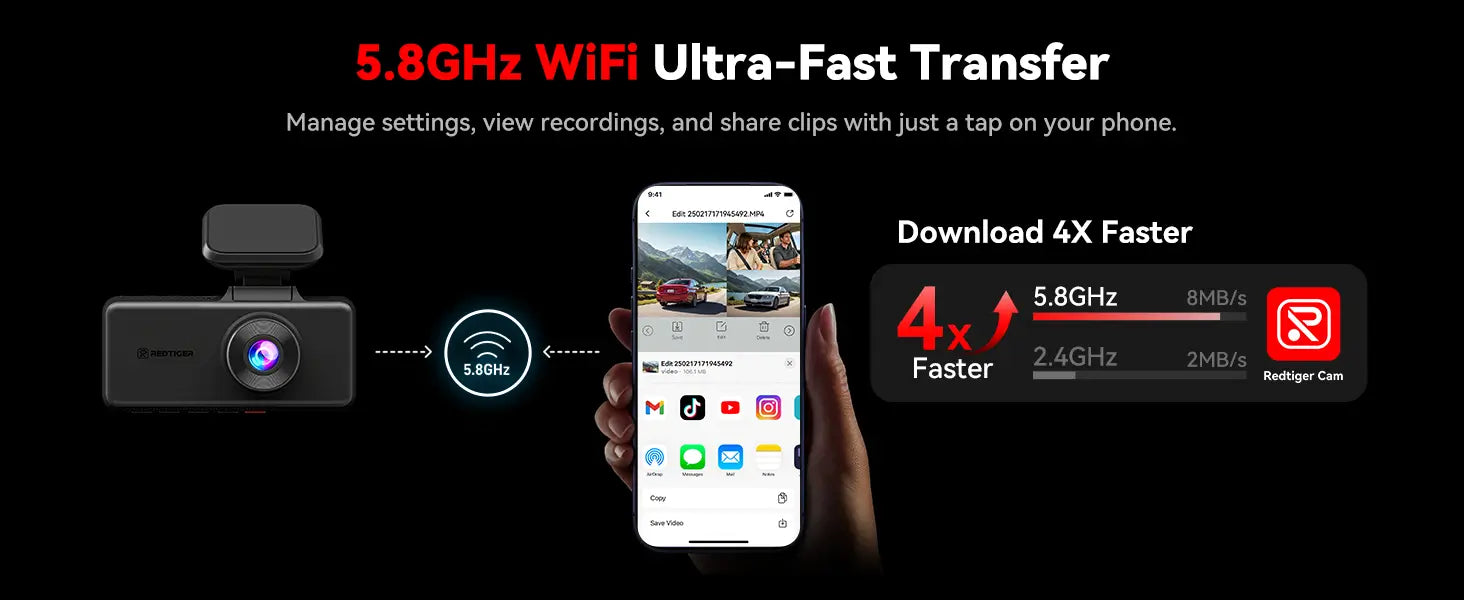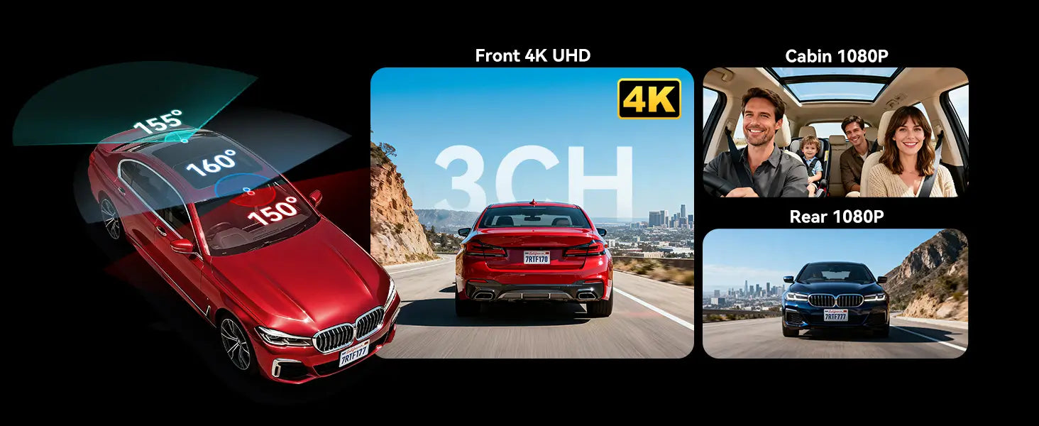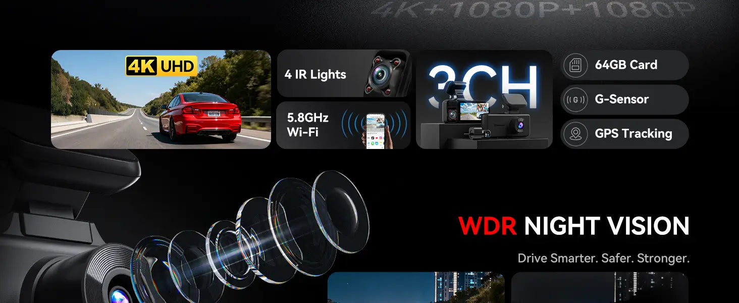 - Latest 3-channel dash cam with true 4K and fast 5 GHz Wi-Fi