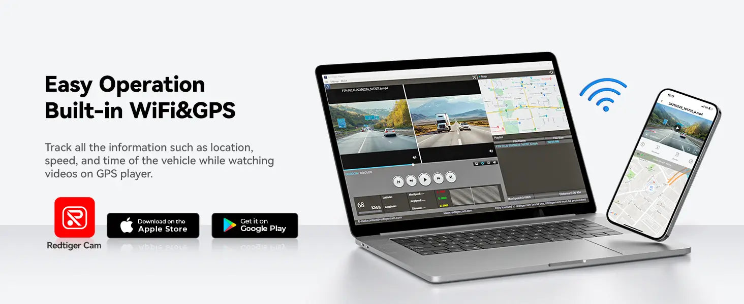 • Featuring with 170° Wide Angle, 24/7 Parking monitoring (Hardwire kit needed), WiFi&App control, GPS, Super Night Vision, Loop Recording!